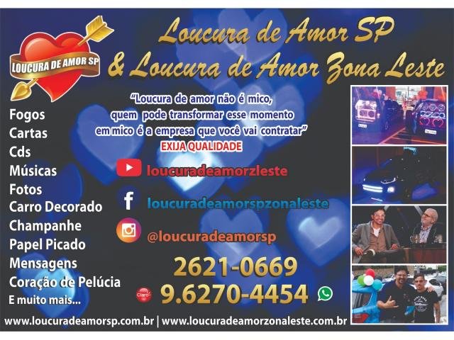 Carro de mensagem ao vivo, Loucura de amor na zona leste de São Paulo, atendemos, São Paulo, Guarulhos & Região, nossos kits contem: